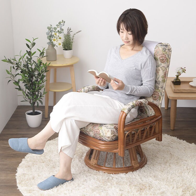 天然籐 座椅子 ハイタイプ リクライニング3段階 360回転 ラタン 回転座椅子 座椅子 1人掛け リラックスチェア 肘掛け付き【送料無料】