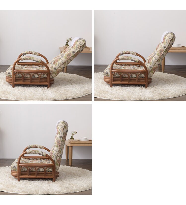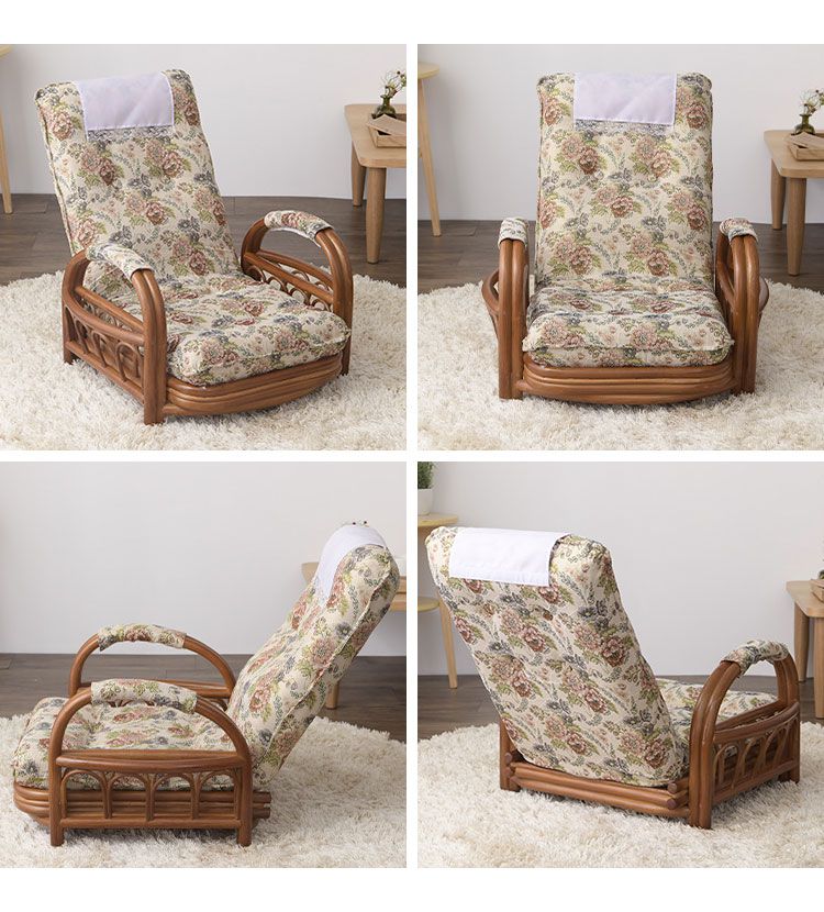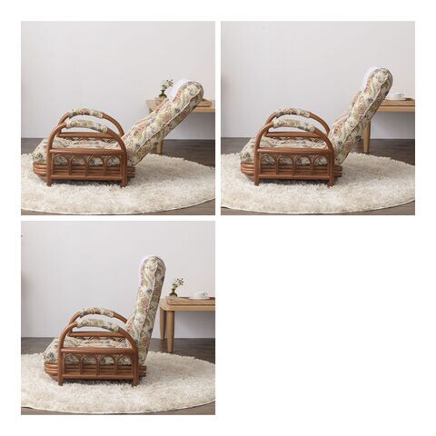天然籐 座椅子 ロータイプ リクライニング3段階 360回転 ラタン 回転座椅子 座椅子 1人掛け リラックスチェア 肘掛け付き【送料無料】