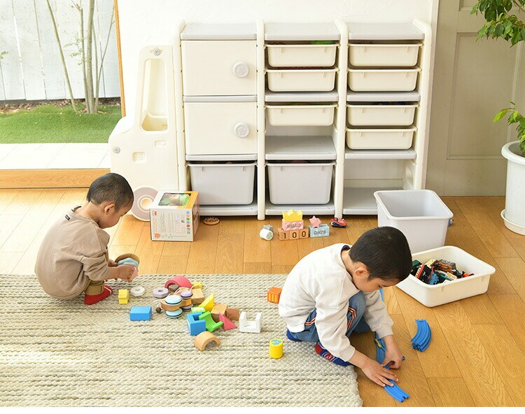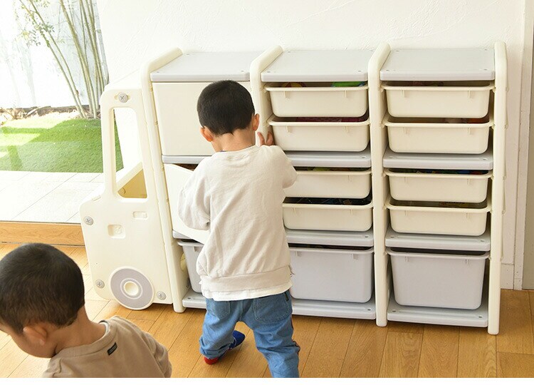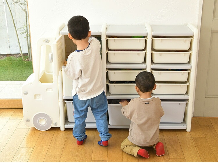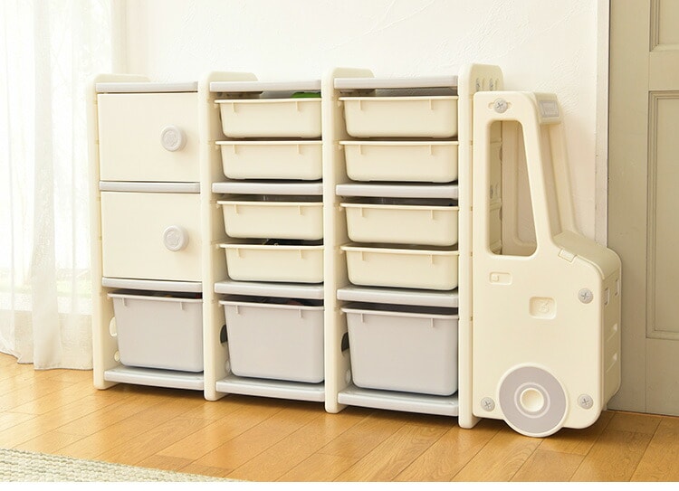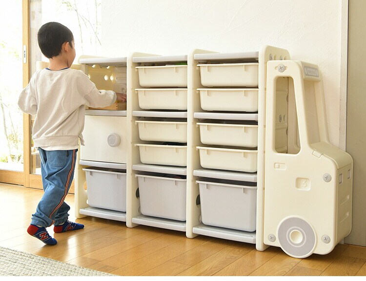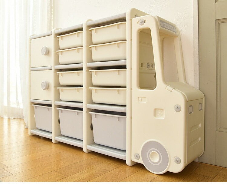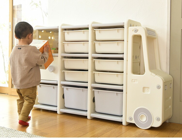 ・フォルムがトラックの形をしていて、子供が自らお片付けしたくなるおもちゃ収納です!