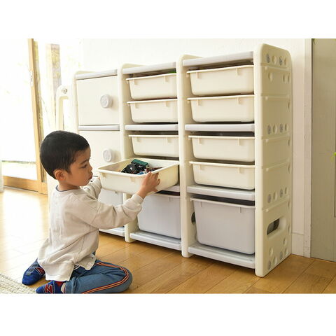 ・棚がたくさんあり、いろんなおもちゃを分類して収納することが可能。