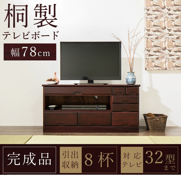 テレビ台 引き出し8杯 桐製 パーソナル ローボード テレビボード 32型 完成品 78cm テレビラック キャビネット【送料無料】