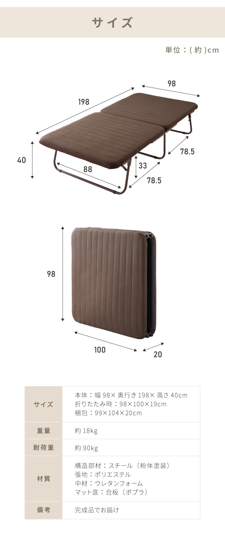 完成品でお届け 折りたたみベッド シングル 折りたたみ 収納可能 コンパクト ベッド 簡易ベッド 折り畳みベッド 一人暮らし 在宅介護 シングルベッド ベッド シングルサイズ サブベッド【送料無料】