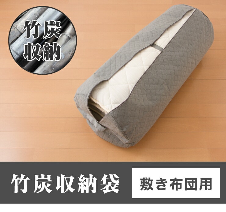 竹炭収納袋 敷き布団収納 クローゼット収納 押入れ収納 ふとん収納袋 布団収納ケース 円筒形 布団袋 炭入り消臭【送料無料】