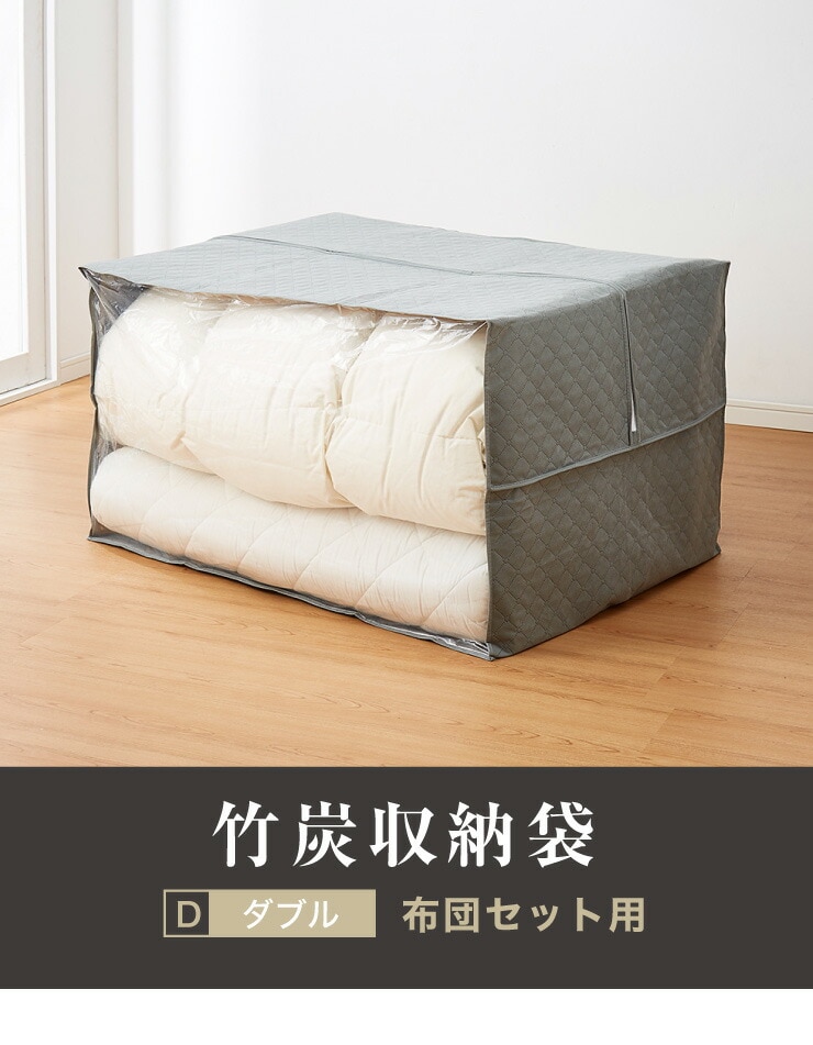 炭入り 消臭 収納ケース 布団セットダブル 布団収納 ケース 炭入り消臭 収納袋 竹炭 竹炭収納 消臭 調湿 布団袋 布団用バッグ【送料無料】