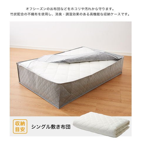 収納ケース 敷布団シングルケース 竹炭収納袋 炭入り 消臭 炭入り消臭 調湿 コンパクト 省スペース 布団収納ケース 布団 ふとん 掛けふとん 袋 隙間収納 収納 クローゼット収納 押入れ収納 ふとん収納袋 布団袋 【送料無料】
