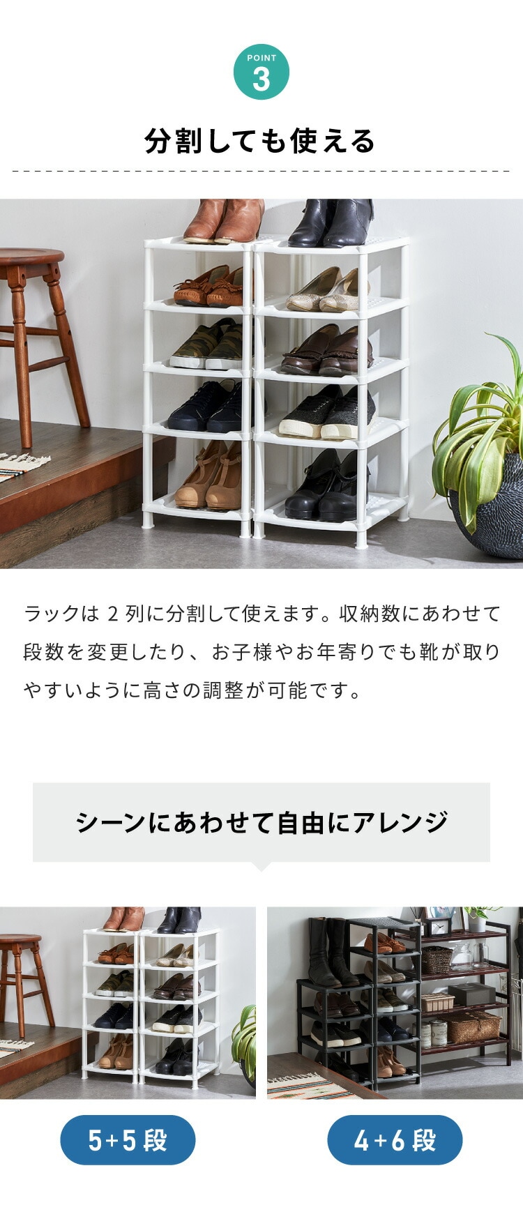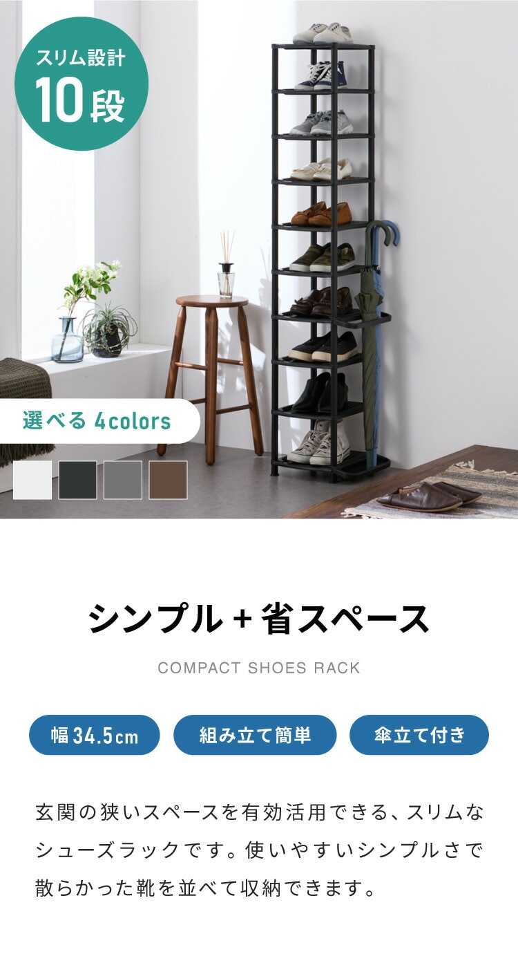 シューズラック スリム 省スペース 10段 大容量 傘立て付き シンプル ブラック ホワイト グレー ブラウン 黒 白 おしゃれ シューズボックス コンパクト 2列 薄型 玄関収納 一人暮らし【送料無料】