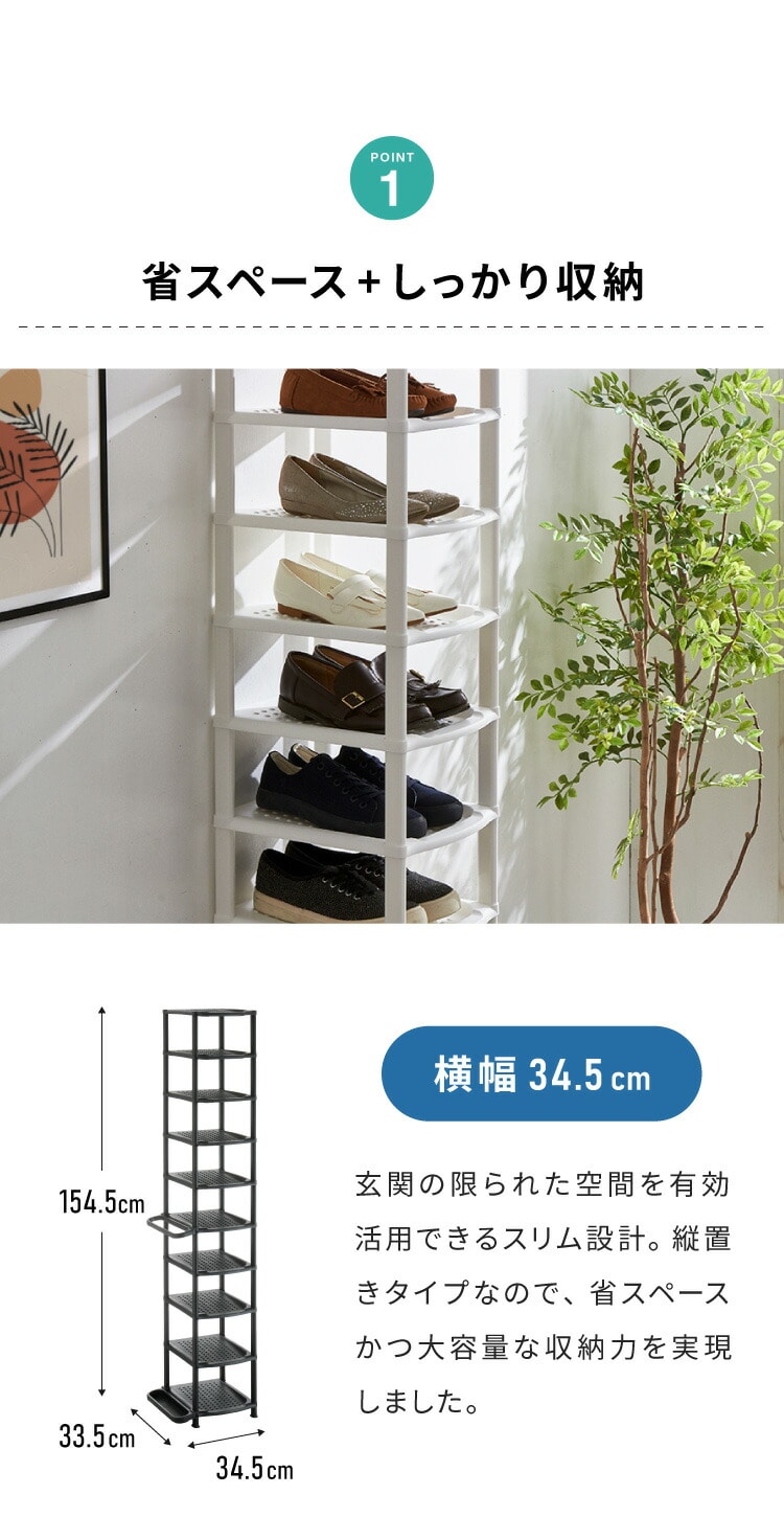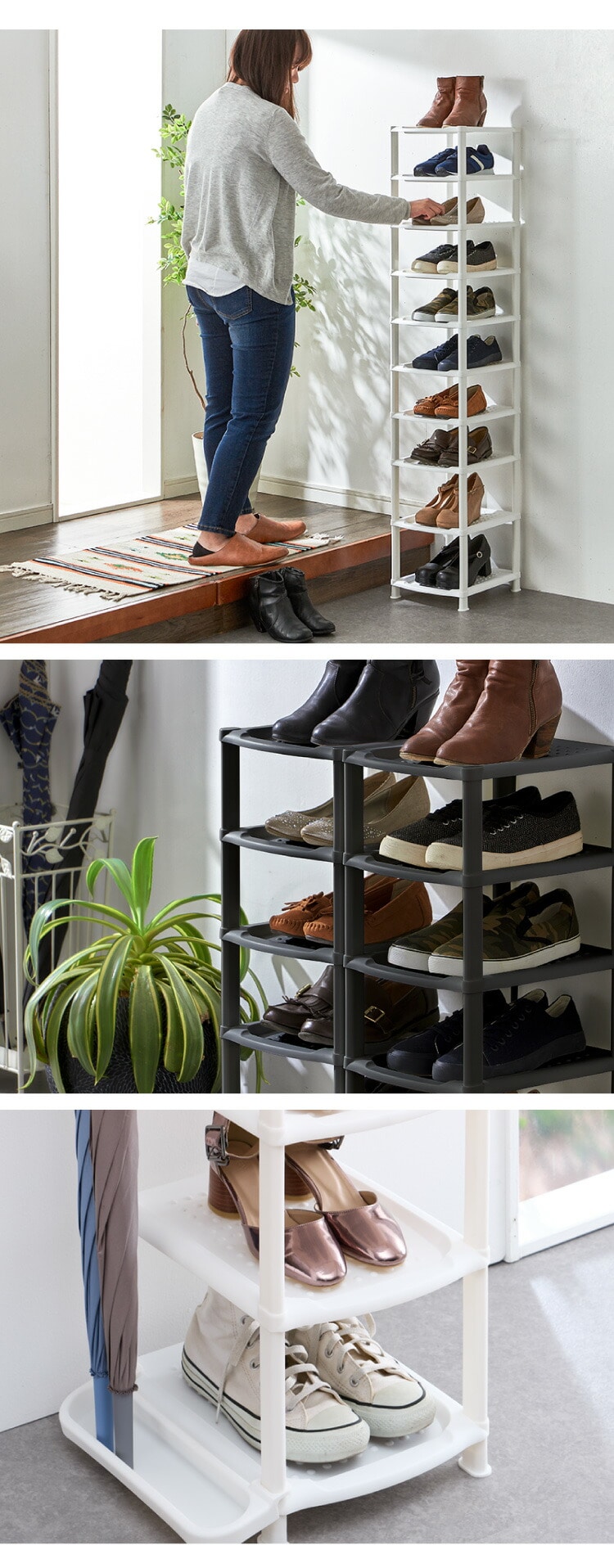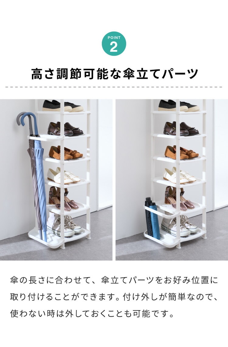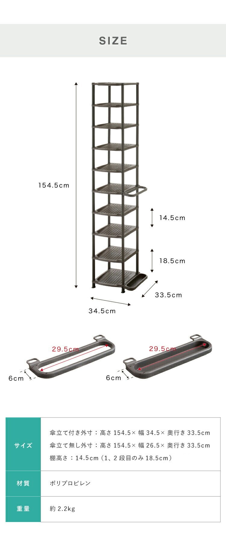 ブーツ、スニーカー、ラック、軽い、ポリプロピレン、オープン、組み立て式、靴棚、単身赴任、見せる収納、靴入れ、靴置き、靴箱、下駄箱、幅34.5cm、高さ154.5cm、奥行33.5cm、傘収納付き、オープンシェルフ、リニューアル、省スペース靴収納、縦、片付け、モダン、ナチュラル