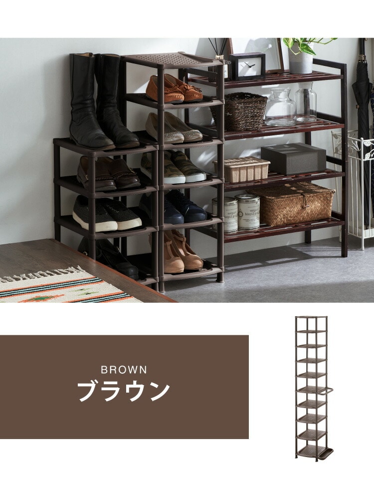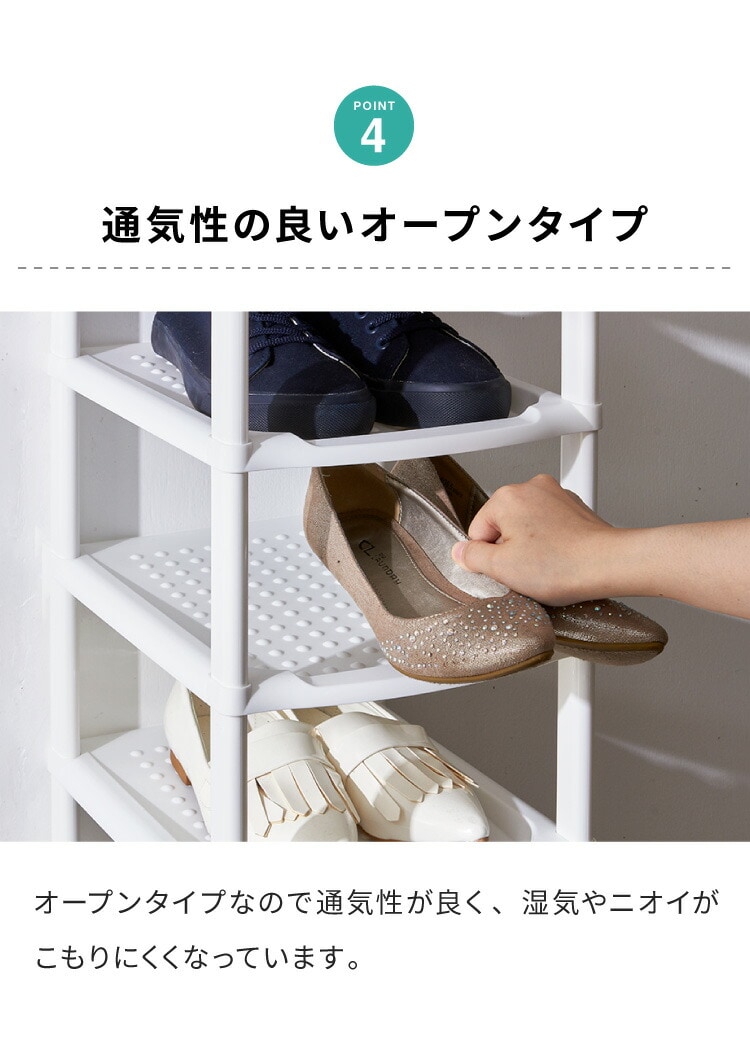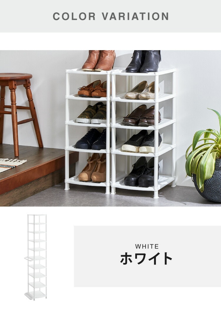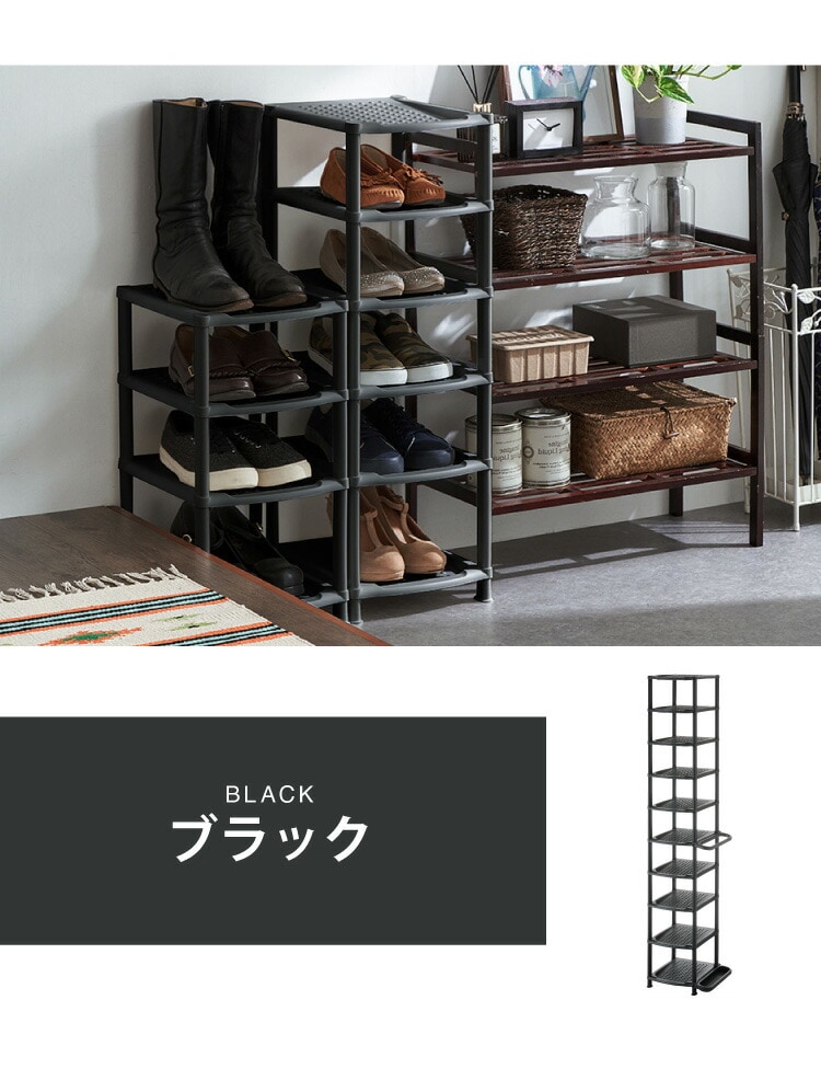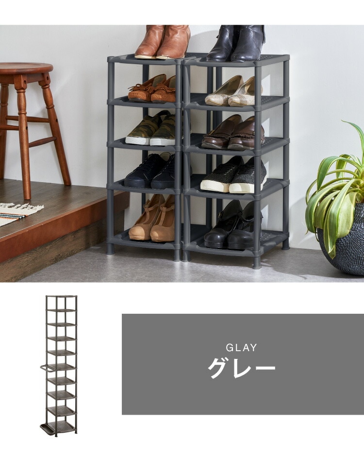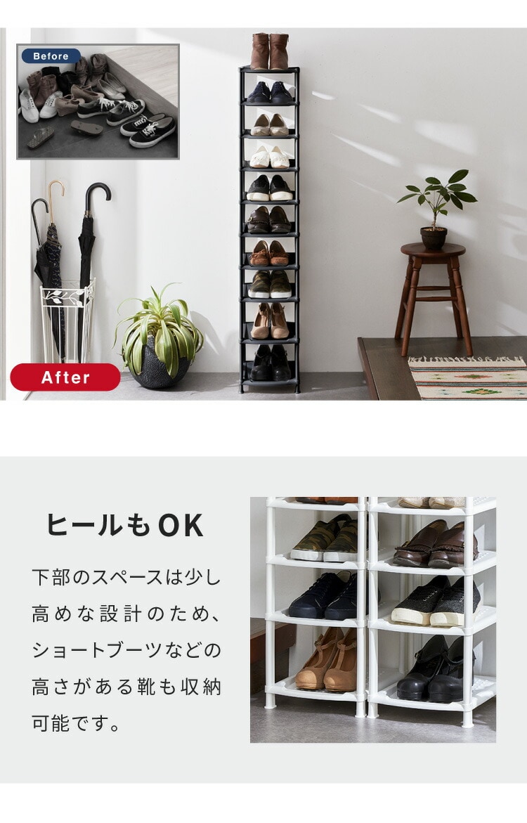 ブーツ、スニーカー、ラック、軽い、ポリプロピレン、オープン、組み立て式、靴棚、単身赴任、見せる収納、靴入れ、靴置き、靴箱、下駄箱、幅34.5cm、高さ154.5cm、奥行33.5cm、傘収納付き、オープンシェルフ、リニューアル、省スペース靴収納、縦、片付け、モダン、ナチュラル