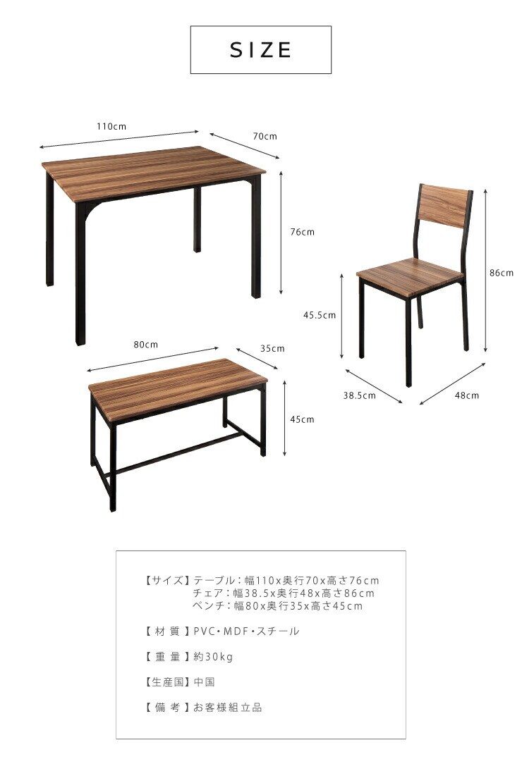 ダイニング4点セット 4人掛け ダイニングテーブルセット 110cm幅 ダイニング ダイニングテーブル ダイニングチェア セット【送料無料】