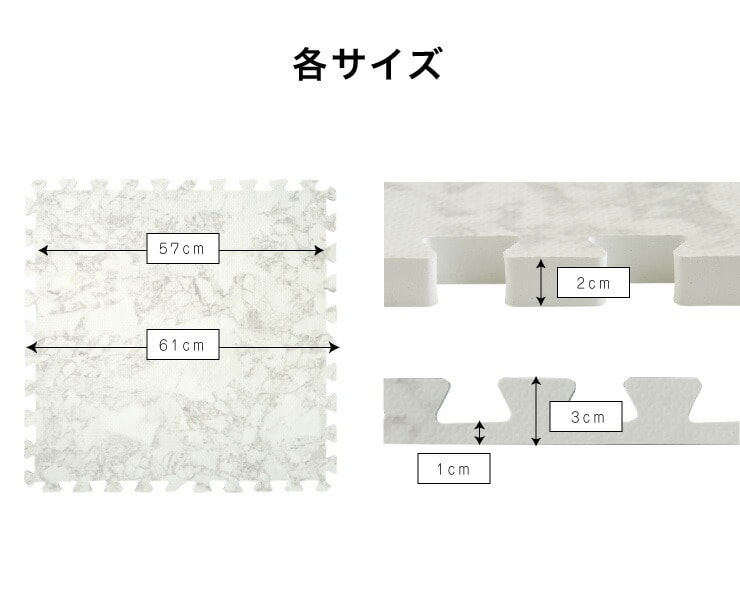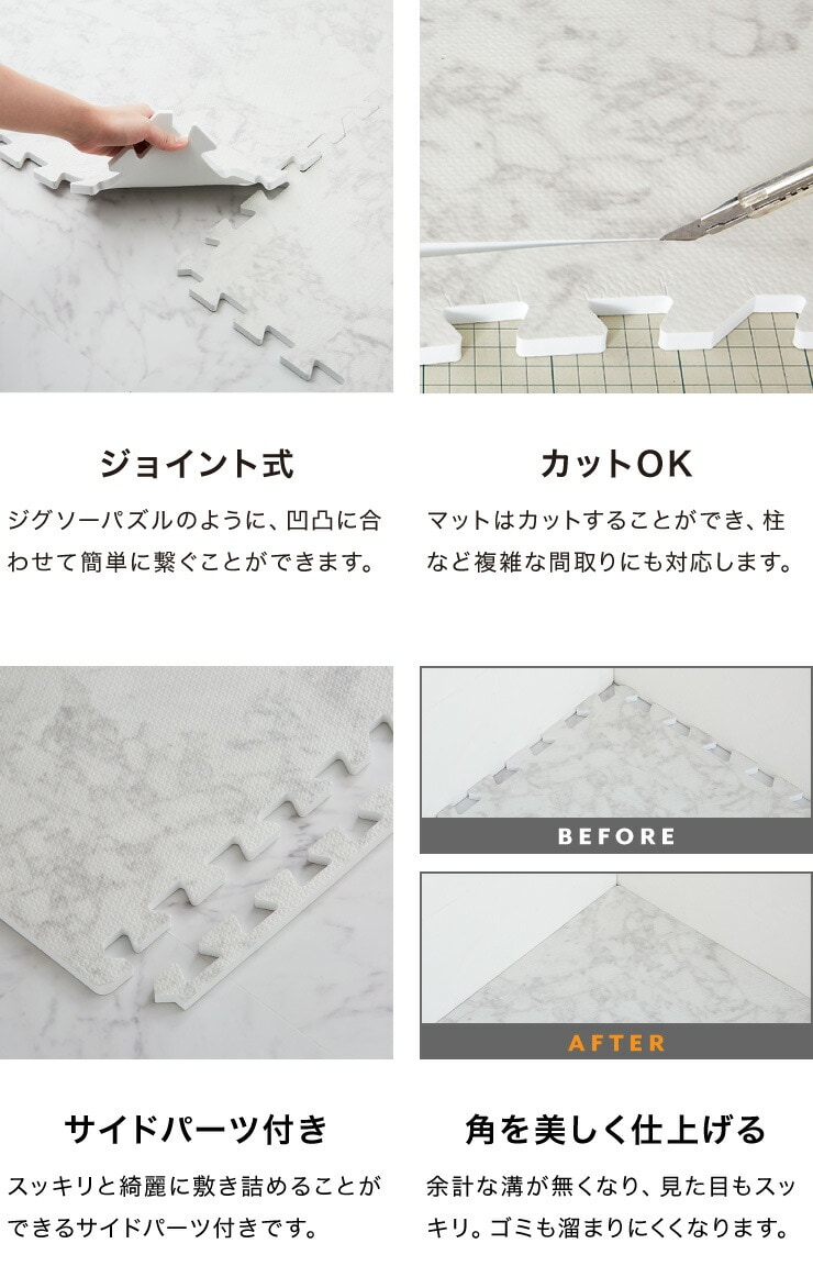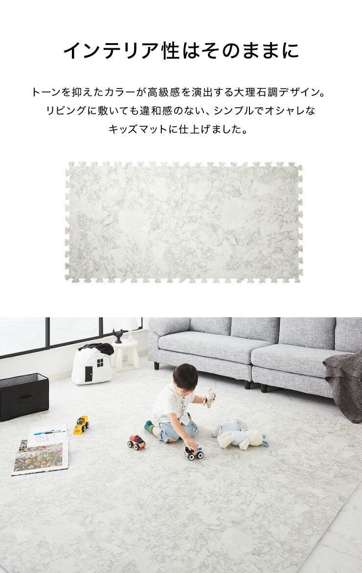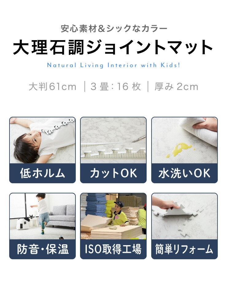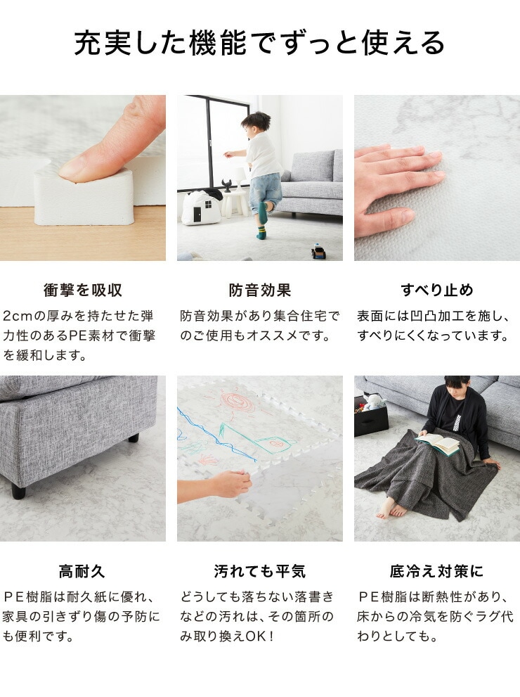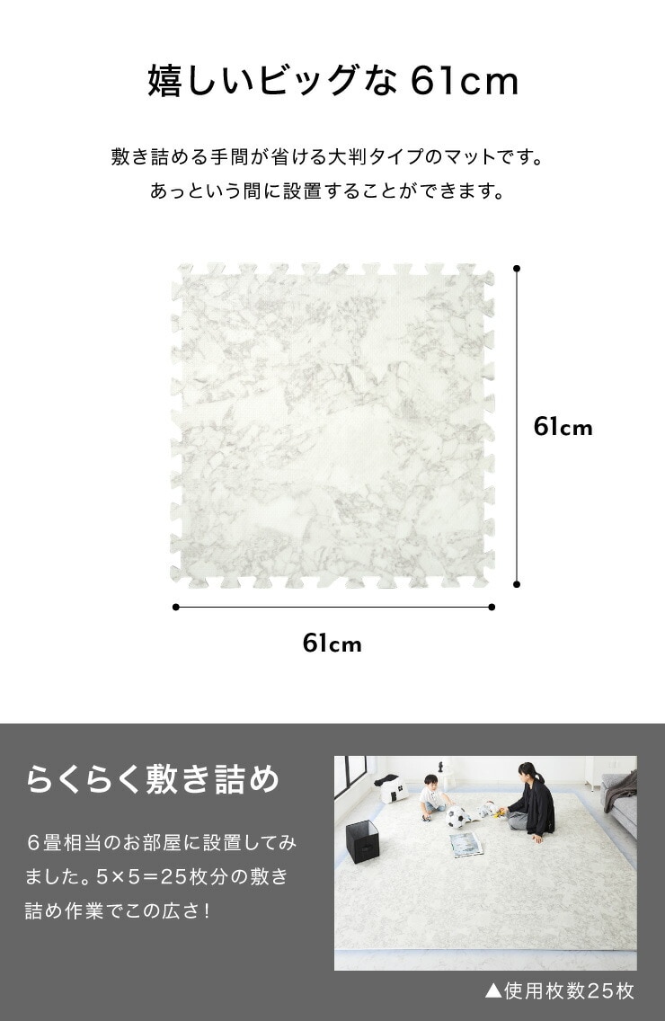 ジョイントマット、大理石柄、大判、60cm、16枚、PE樹脂、低ホルムアルデヒド、3畳相当、16枚組、レイアウト自由、安心素材のカラフルプレイマット、フロアマット、ベビー、洗える、防音、断熱、保温、サイドパーツ付、抗菌、防臭、カーペット、おしゃれ、ジョイント、マット