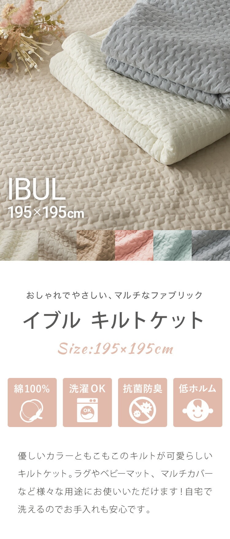 イブル キルトケット 綿100% ラグ 195×195cm 洗える 防臭 抗菌 イブルマット 敷きパッド ベビー マット ソファーカバー キルティング ブランケット マルチカバー ギフト プレゼント 出産祝い【送料無料】
