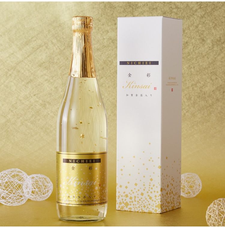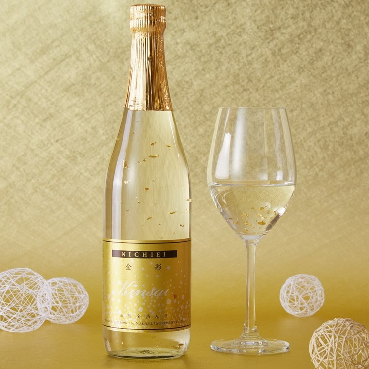 加賀金箔を贅沢に入れて、見た目にも華やかで『金彩』の名にふさわしいこちらの日本酒は、石川県産五百万石を100%使用。