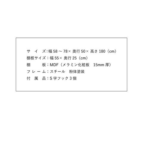 サイズ:幅58~78×奥行50×高さ180(cm)