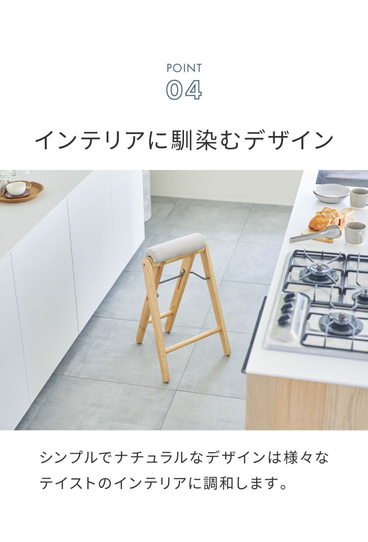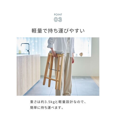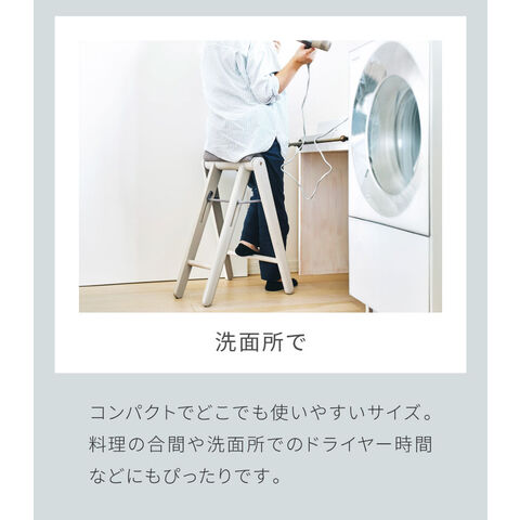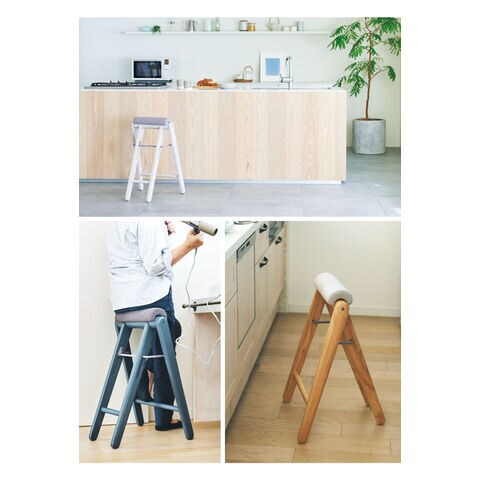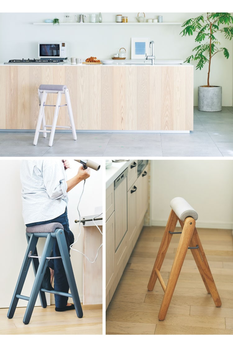 キッチンやドライヤースツールとして使える、折り畳みハイスツール。
