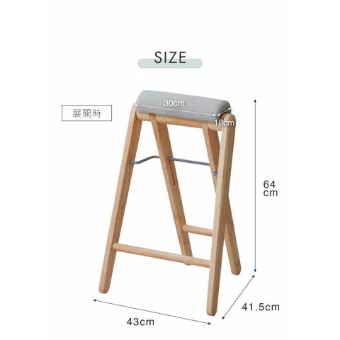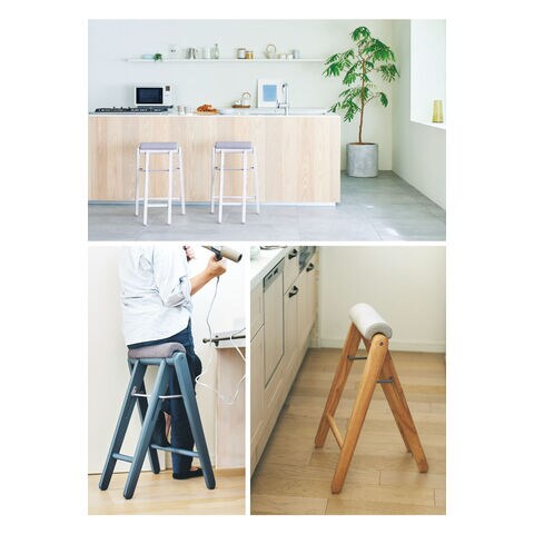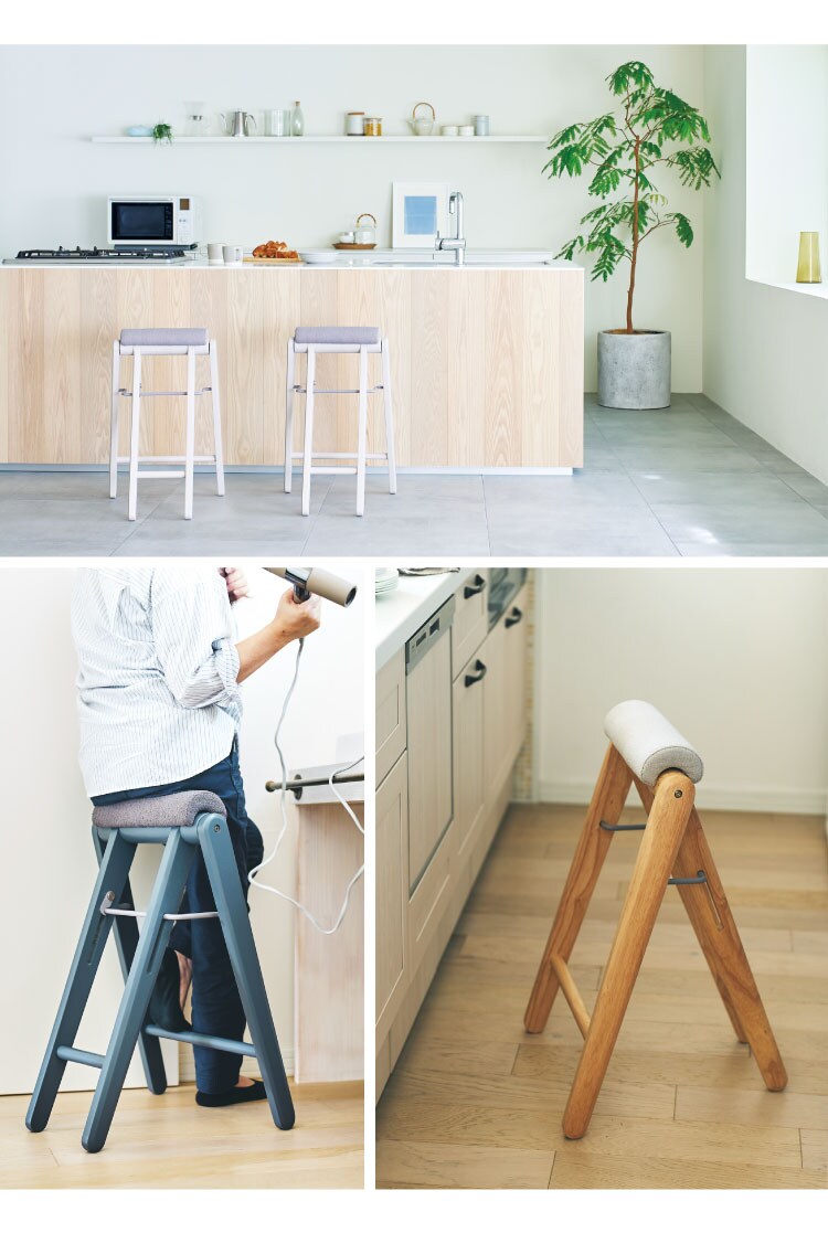 キッチンやドライヤースツールとして使える、折り畳みハイスツール。