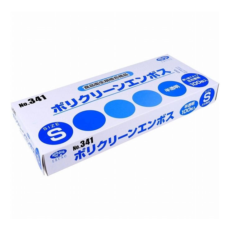 エブノ No.341 ポリクリーンエンボス 食品衛生法適合 使い捨て手袋半透明 Sサイズ 箱入 100枚入