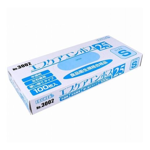 エブノ No.3002 エブケアエンボス25 食品衛生法適合 使い捨て手袋半透明 Sサイズ 箱入 100枚入