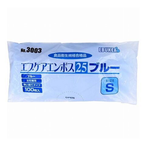 エブノ No.3003 エブケアエンボス25 食品衛生法適合 使い捨て手袋ブルー Sサイズ 袋入 100枚入