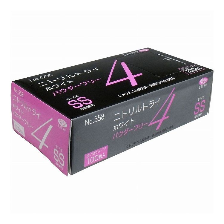 No.558 ニトリルトライ4 ホワイト パウダーフリー ニトリルゴム製 使い捨て手袋 SSサイズ 100枚入