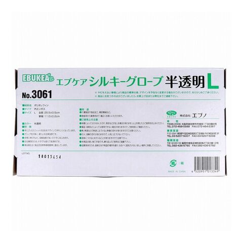 No.3061 エブケアシルキーグローブ 使い捨て手袋 半透明 箱入 Lサイズ 100枚入