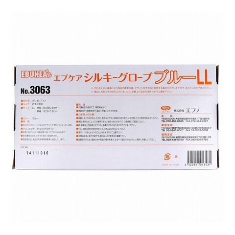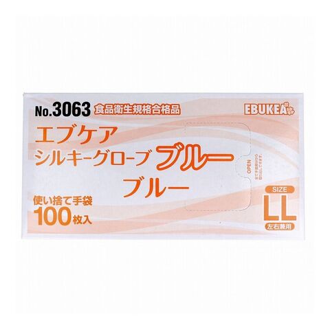 No.3063 エブケアシルキーグローブ 使い捨て手袋 ブルー 箱入 LLサイズ 100枚入