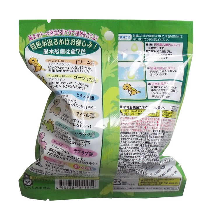 (1)袋から「恐竜お風呂たまご」を取り出します。透明フィルムをはがし、お湯のはられた浴槽にゆっくりと入れます。