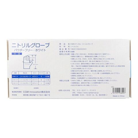 【業務用】 CGMメディカル ニトリルグローブ パウダーフリー ホワイト Sサイズ 100枚入 ニトリル手袋【ポイント10倍】