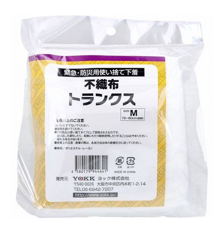 緊急・防災用使い捨て下着 不織布トランクス 前あきタイプ Mサイズ 2枚入 男性下着【ポイント10倍】
