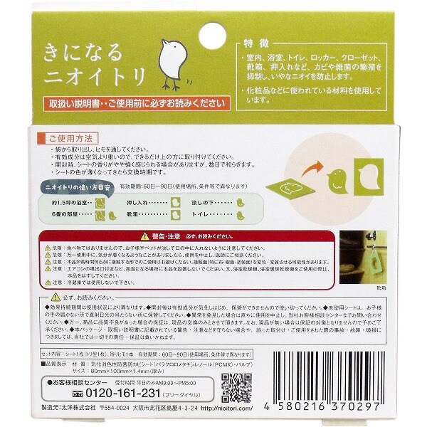 きになるニオイトリ オールマイティ 1枚入 吊るすだけ カビや雑菌の繁殖を抑制 ニオイ 防止