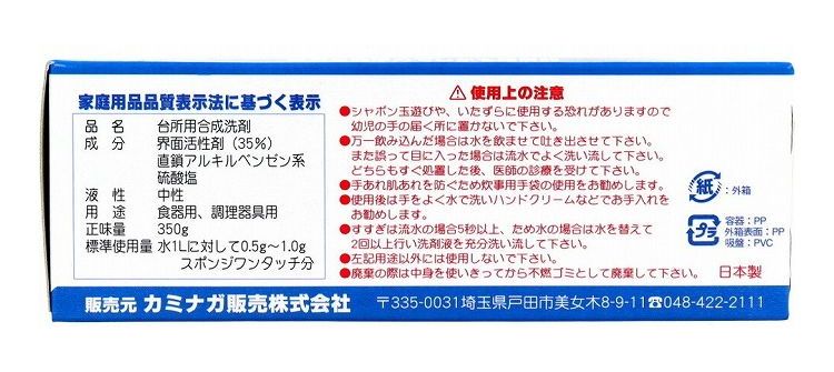界面活性剤(35%)、直鎖アルキルベンゼン系、硫酸塩