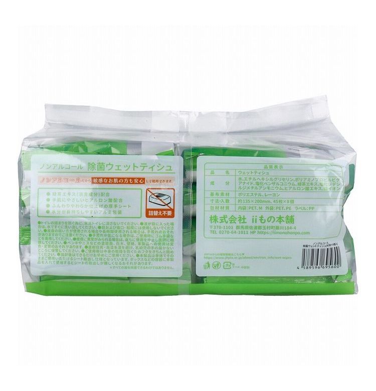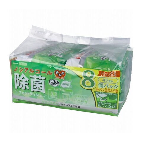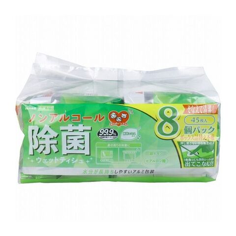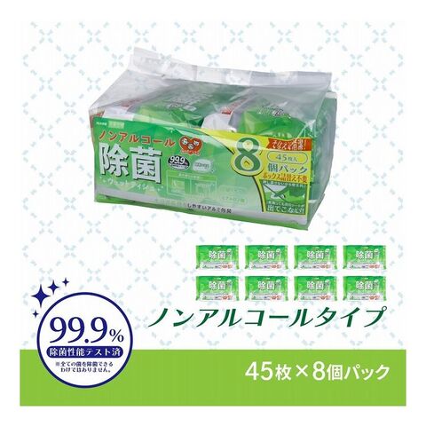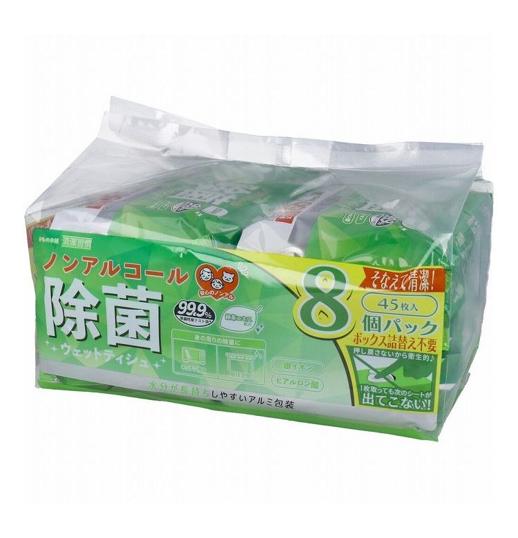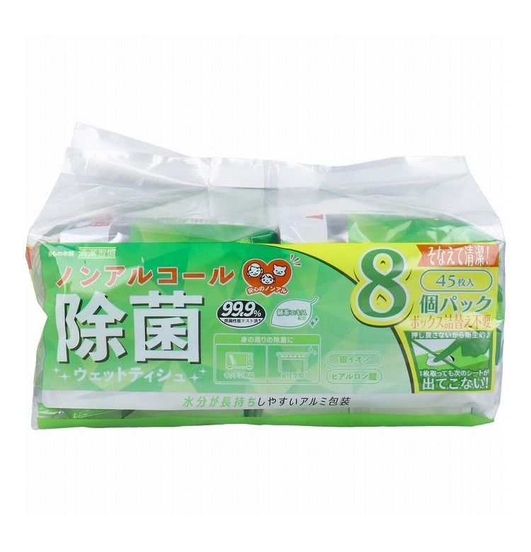 清潔習慣 除菌ウェットティシュ ノンアルコールタイプ 45枚入×8個パック 除菌ウェットシート【ポイント10倍】