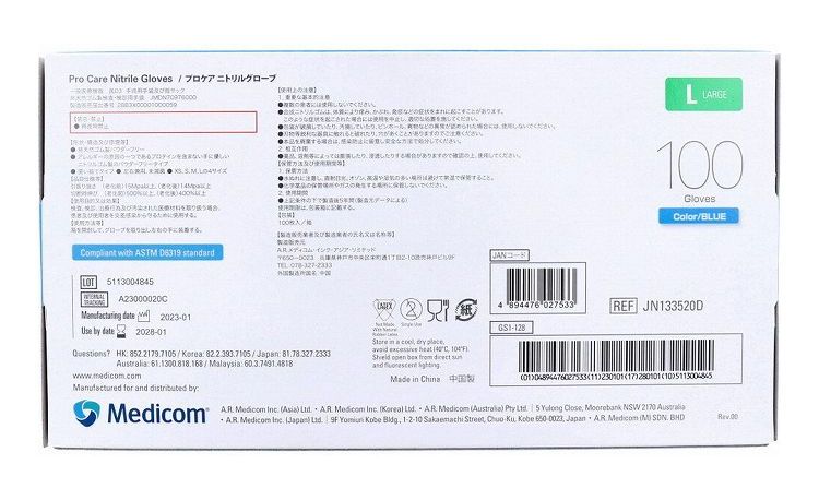 プロケア ニトリルグローブ ブルー Lサイズ 100枚入