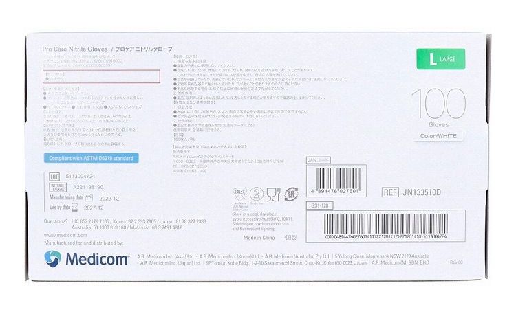 プロケア ニトリルグローブ ホワイトLサイズ 100枚入
