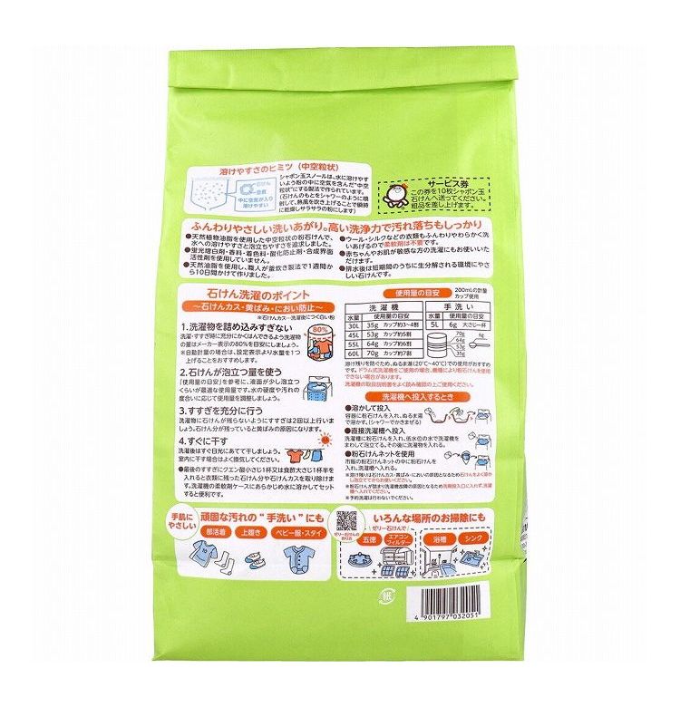 ・ドラム式洗濯機をご使用の場合、機種により粉石けんを使用できない場合があります。