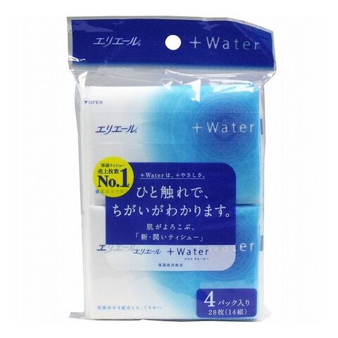 エリエール +Water プラスウォーター ポケットティシュー 28枚 14組 ×4個パック