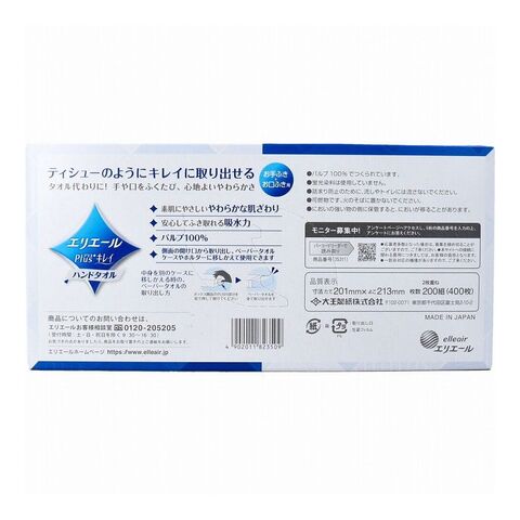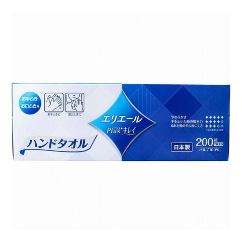 エリエールPlus+キレイ ペーパーハンドタオル ソフトタイプ ボックス 2枚重ね200組 400枚