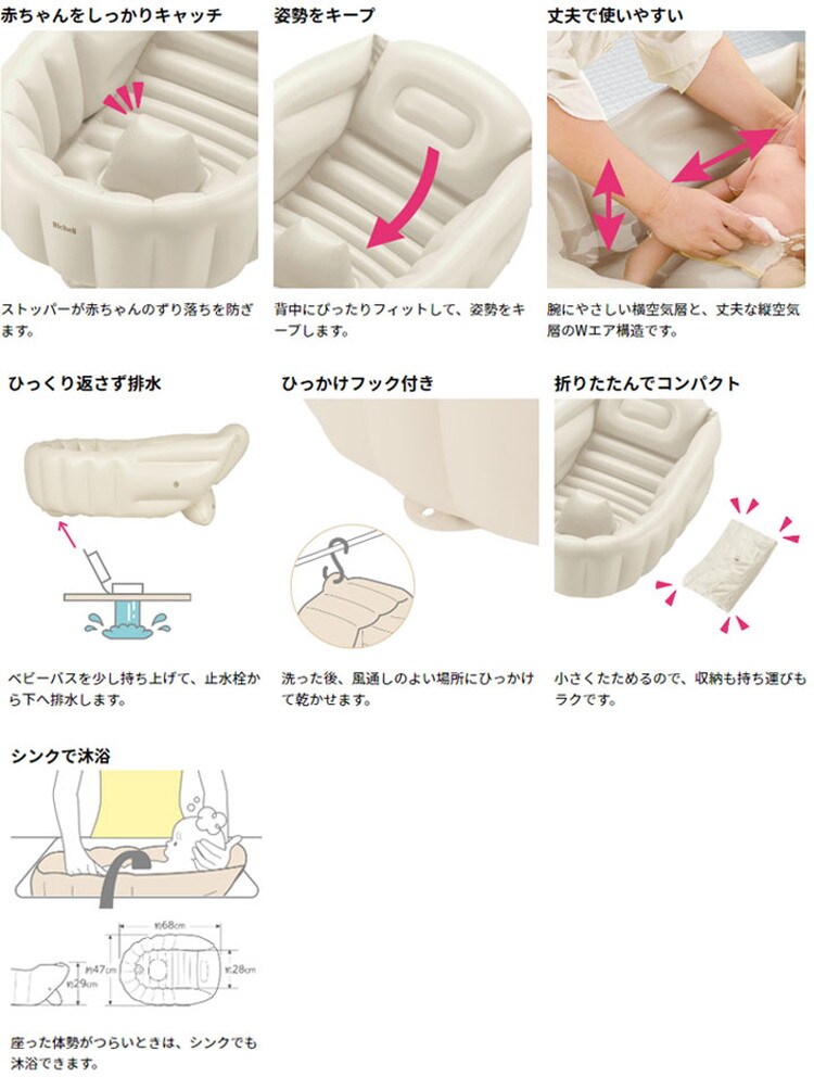 ・沐浴中はお子様の頭を必ずささえ、おぼれたり耳に水が入らないようにしてください。