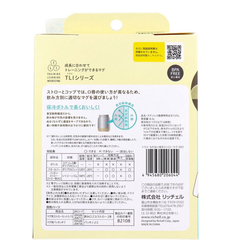リッチェル トライ もれない保冷ストローマグ 300 ライトグレー ベビー食器 マグカップ【ポイント10倍】 【送料無料】