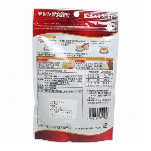 ぶどう糖、食塩、オニオン粉末、デキストリン、醤油粉末、ガーリック粉末、酵母エキス、椎茸エキス、パセリ、調味料(アミノ酸等)、(原材料の一部に大豆、小麦を含む)