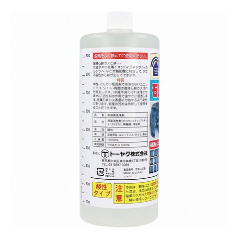 中性アルカリ性洗剤では落ちないユニットバス・タイル・陶器・金属の石鹸カス汚れを除去します。