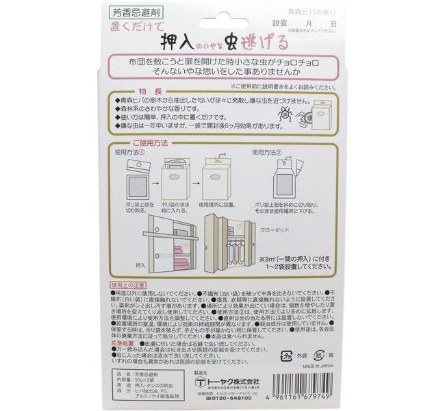 置くだけで嫌な虫逃げる 押入れ用 青森ヒバの香り 50g×2袋入