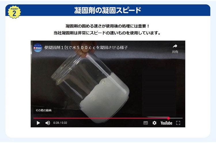 ・便凝固剤:高分子吸水樹脂、殺菌剤、消臭剤