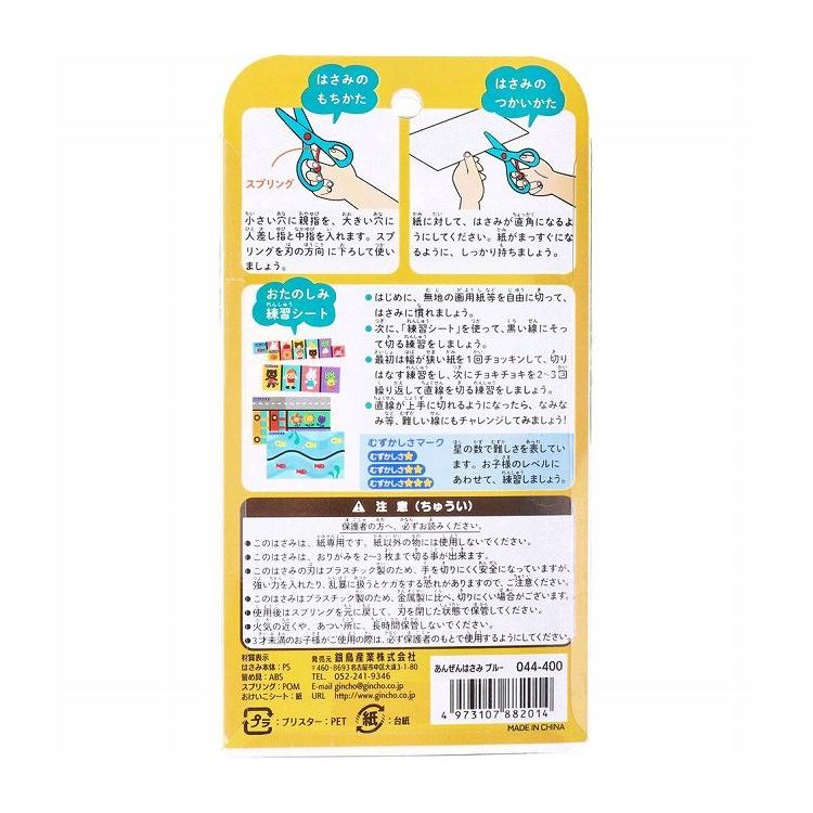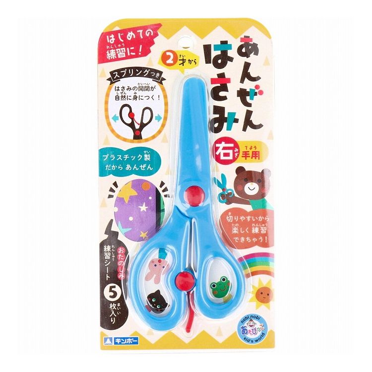 はさみの開閉が自然に身につくスプリング付き!●プラスチック製だからあんぜん。