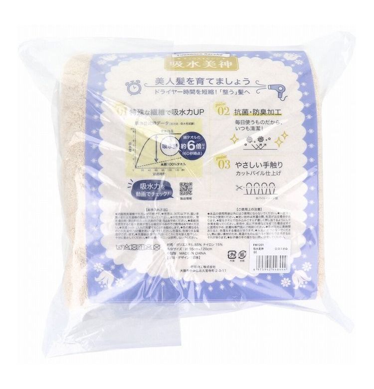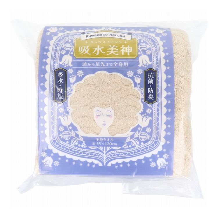 フワモコマルシェ 吸水美神 キュウスイビジン 全身タオル 約55×120cm ベージュ 1枚入 日用品【ポイント10倍】