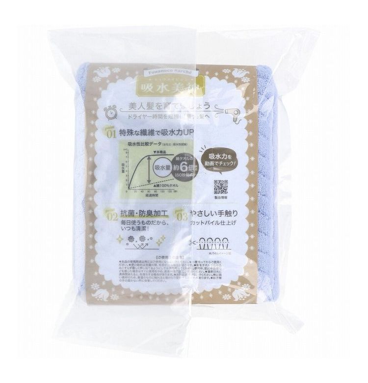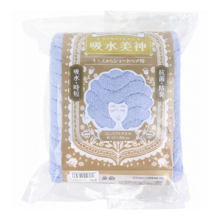 フワモコマルシェ 吸水美神 キュウスイビジン コンパクトタオル 約33×80cm ブルー 1枚入 日用品【ポイント10倍】