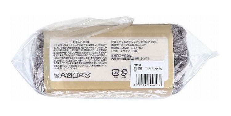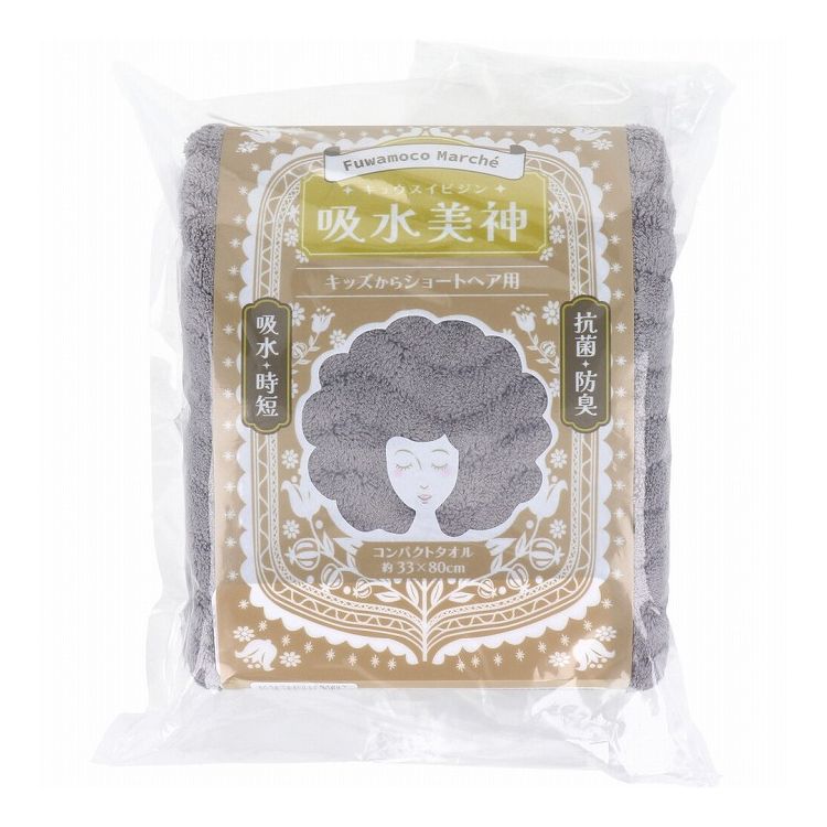 フワモコマルシェ 吸水美神 キュウスイビジン コンパクトタオル 約33×80cm グレー 1枚入 日用品【ポイント10倍】