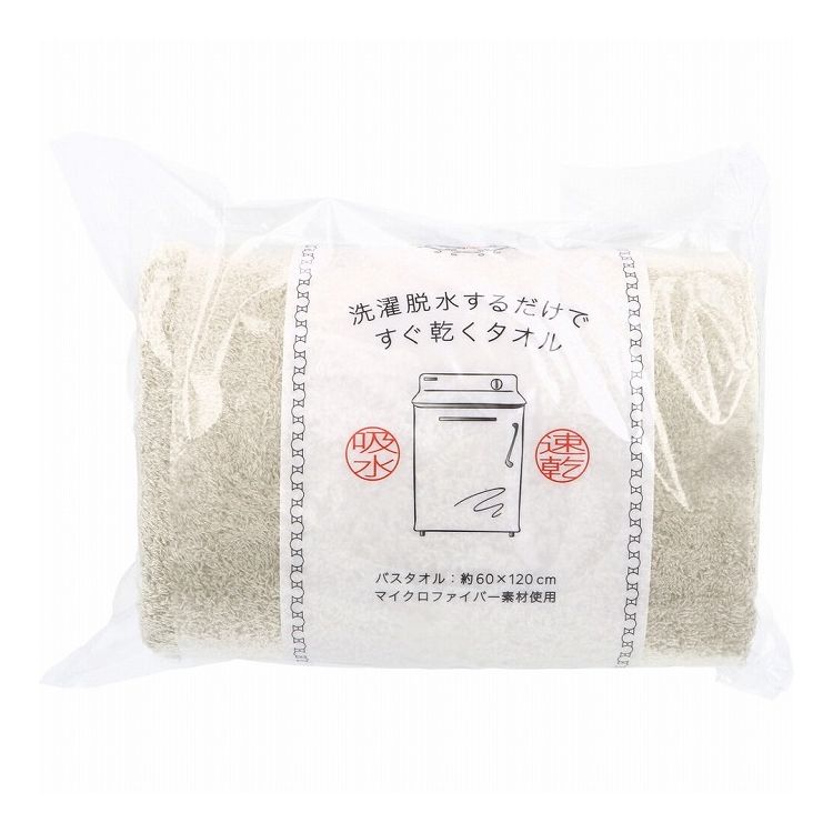 洗濯脱水するだけですぐ乾くタオル2 バスタオル 約60×120cm ベージュ 1枚入 日用品【ポイント10倍】 【送料無料】