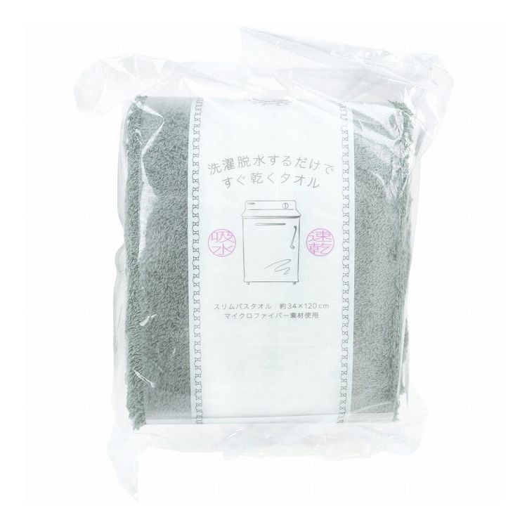 洗濯脱水するだけですぐ乾くタオル2 スリムバスタオル 約34×120cm ダークグリーン 1枚入 日用品【ポイント10倍】