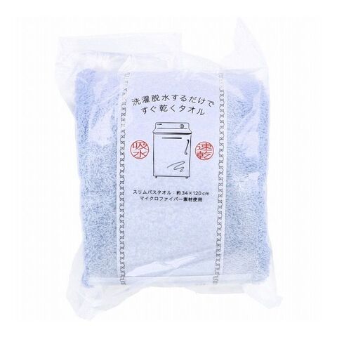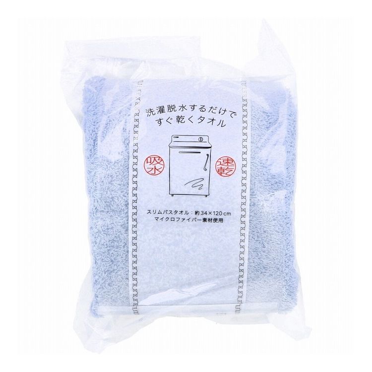 洗濯脱水するだけですぐ乾くタオル2 スリムバスタオル 約34×120cm ライトブルー 1枚入 日用品【ポイント10倍】