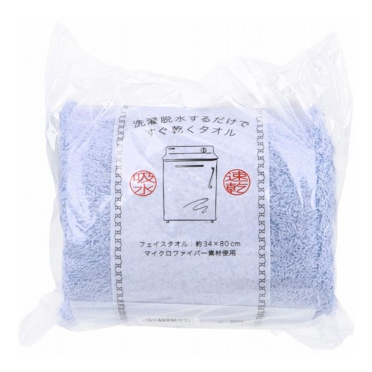 洗濯脱水するだけですぐ乾くタオル2 フェイスタオル 約34×80cm ライトブルー 1枚入 日用品【ポイント10倍】